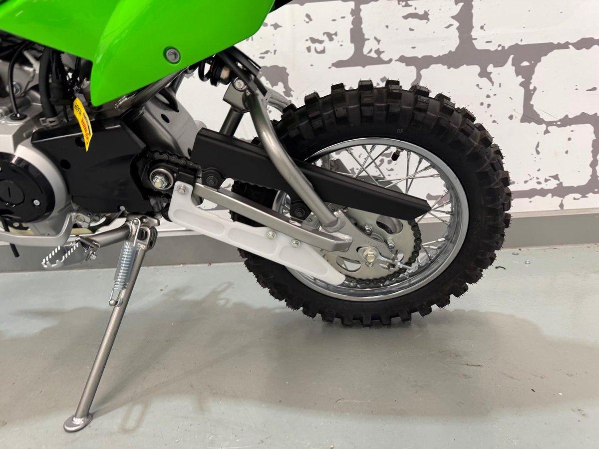 The larger wheels, taller seat height, and longer suspension travel make the KLX110R L ideal for bigger or more experienced youth riders. Add in electric start, rugged trail-ready durability, and classic Kawasaki green styling, and you’ve got a bike that’s built to grow with the rider.