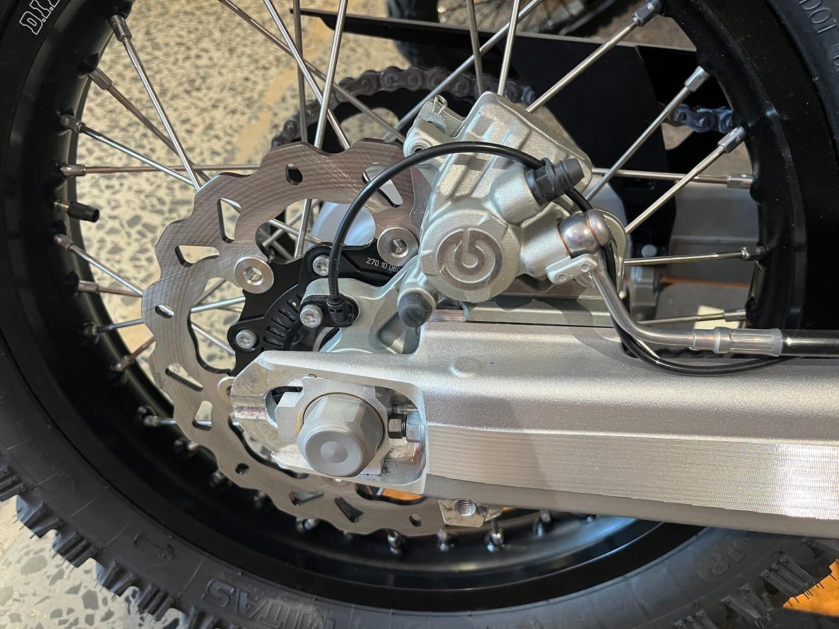 • Front Brake Description: Single petal disc, Brembo floating caliper, Hydraulic; Bosch 9.1MP ABS