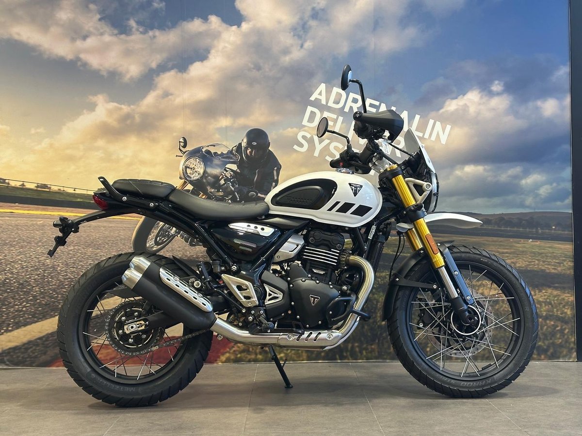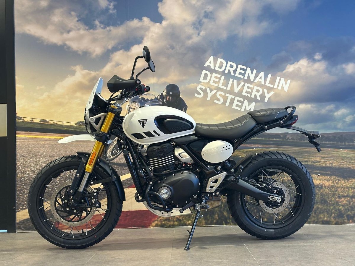 Introducing the 2026 Triumph Scrambler 400 X, finished in classic White, blending timeless scrambler style with modern performance, practicality, and ease of use. This lightweight, versatile bike is ideal for riders who appreciate a manageable ride with enough character and capability for both city streets and light adventure.