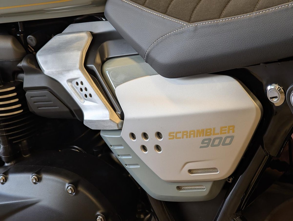 The Triumph Scrambler 900 blends timeless scrambler styling with modern engineering, making it one of the most versatile bikes in Triumph’s modern classic range. Its 900cc twin engine delivers strong low-end torque and smooth, predictable power, ideal for both new and experienced riders.