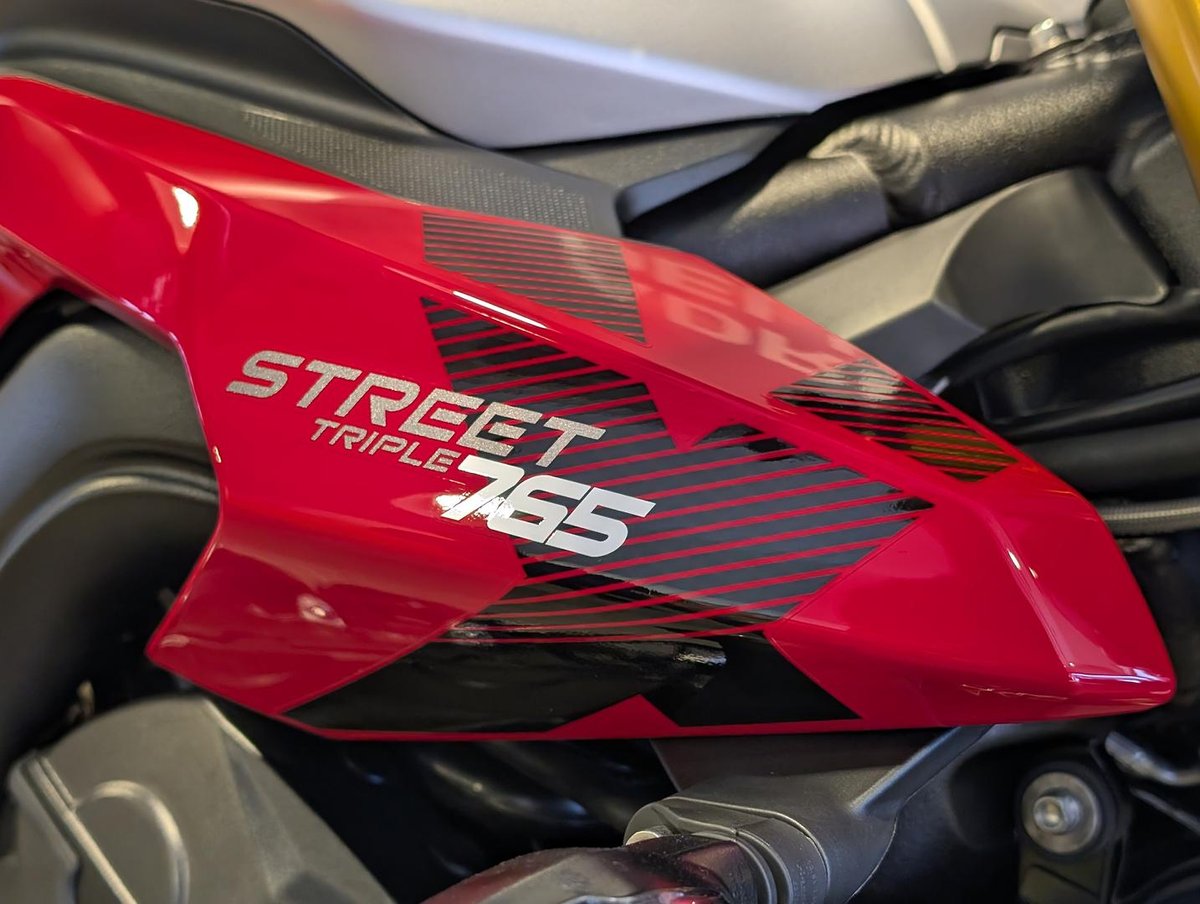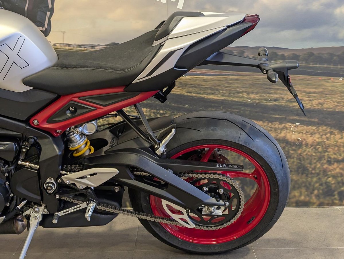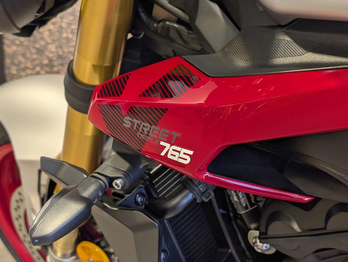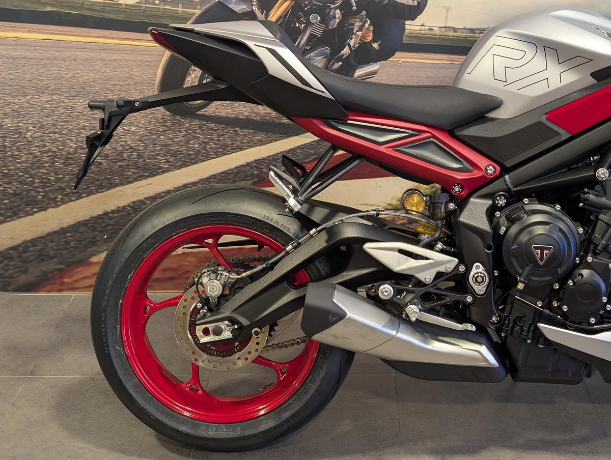 Powered by Triumph’s class-leading 765cc triple engine, the Street Triple RX offers explosive mid-range performance, razor-sharp throttle response, and a thrilling soundtrack. This example is brand new, ready for immediate delivery, and backed by full factory warranty.
