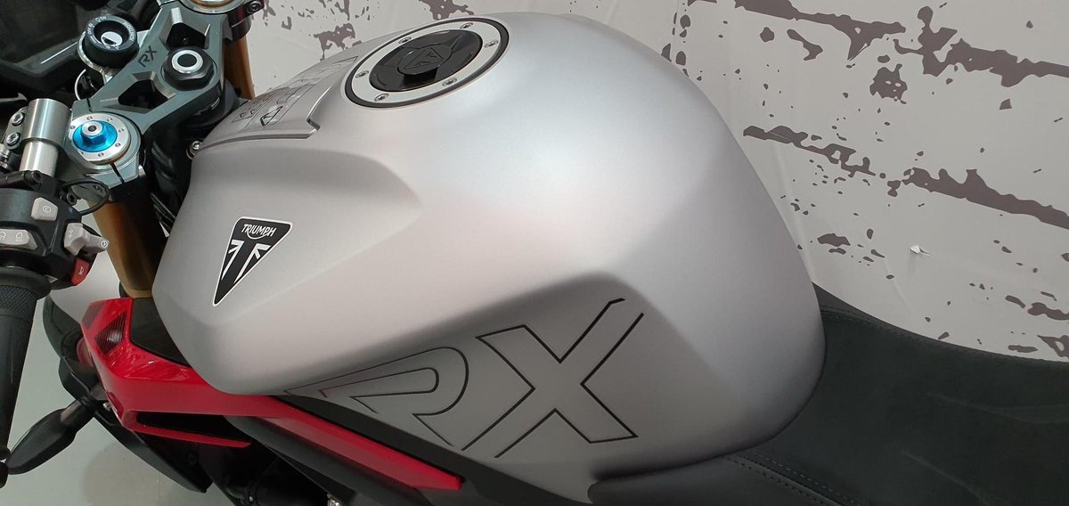 What sets the RX apart is its exclusive detailing and purposeful design — from the precision-machined top yoke and laser-etched RX exhaust logo to the striking matte aluminium silver paint with Diablo red accents — this is a bike that looks as sharp as it performs. Offered as a limited-run special edition with premium specs and race-inspired technology, the Street Triple 765 RX is your ticket to pure naked-bike exhilaration on both road and track.