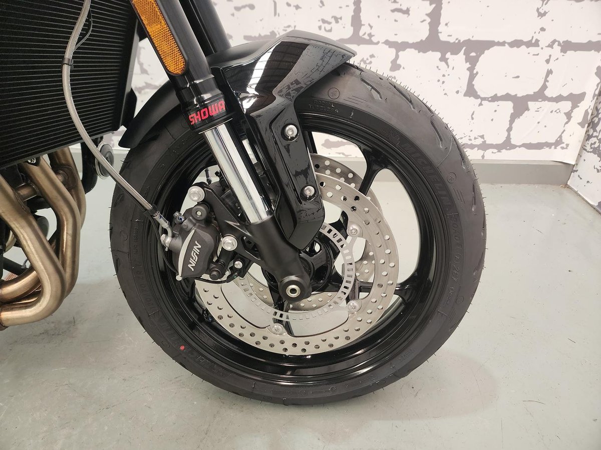 A naked bike with premium feel and strong performance. Its 660 cc triple engine delivers smooth torque and a unique sound while staying LAMS-legal. You get modern tech like cornering ABS, traction control, quick-shifter, cruise control, and a TFT display. At ~195 kg wet with an 805 mm seat height, it’s agile and easy to ride. With sharp neo-retro styling and everyday usability, the Trident 660 blends fun, practicality, and premium design in one standout middleweight bike.
