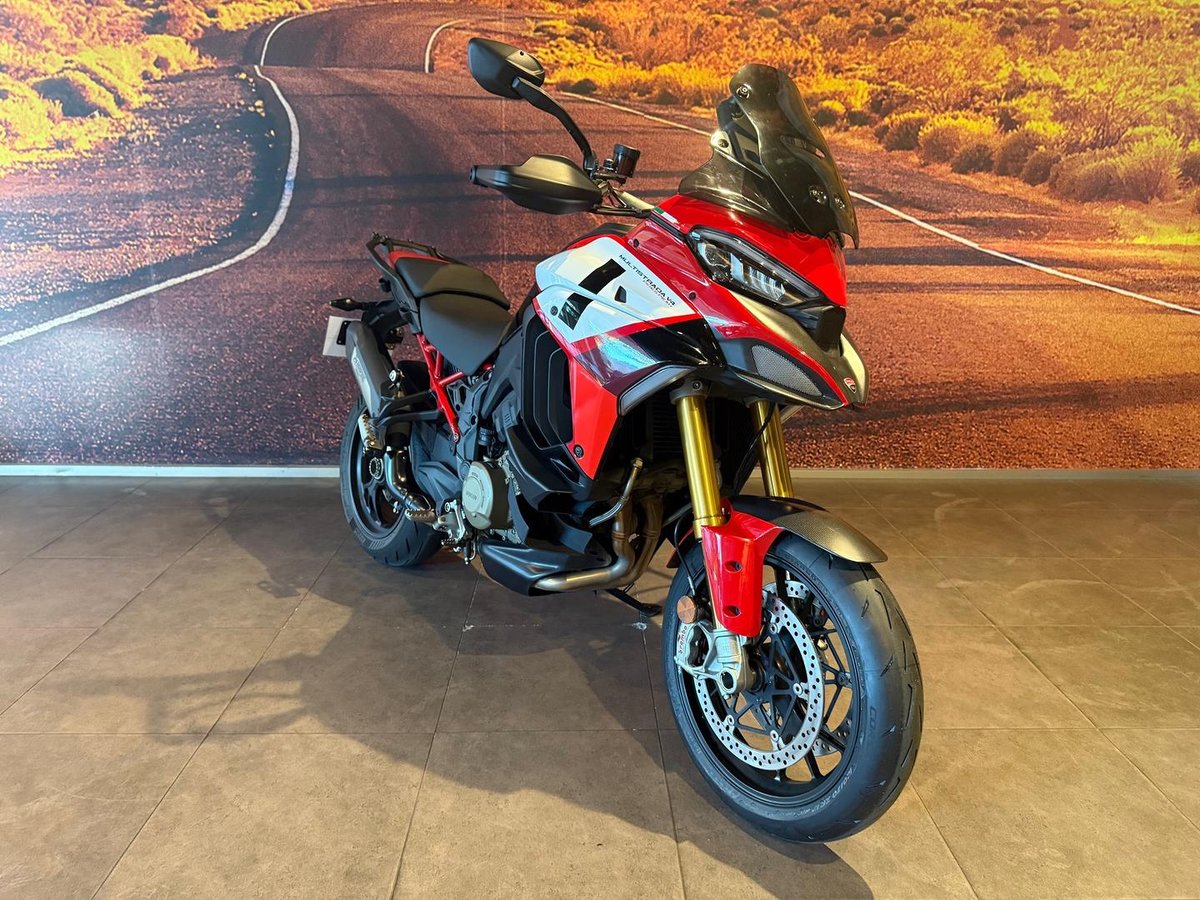 The 2022 Ducati Multistrada V4 Pikes Peak is a high-performance sport-tourer, designed as the sportiest model in the range with a 170hp V4 engine, 17-inch forged wheels, and Öhlins electronic suspension.