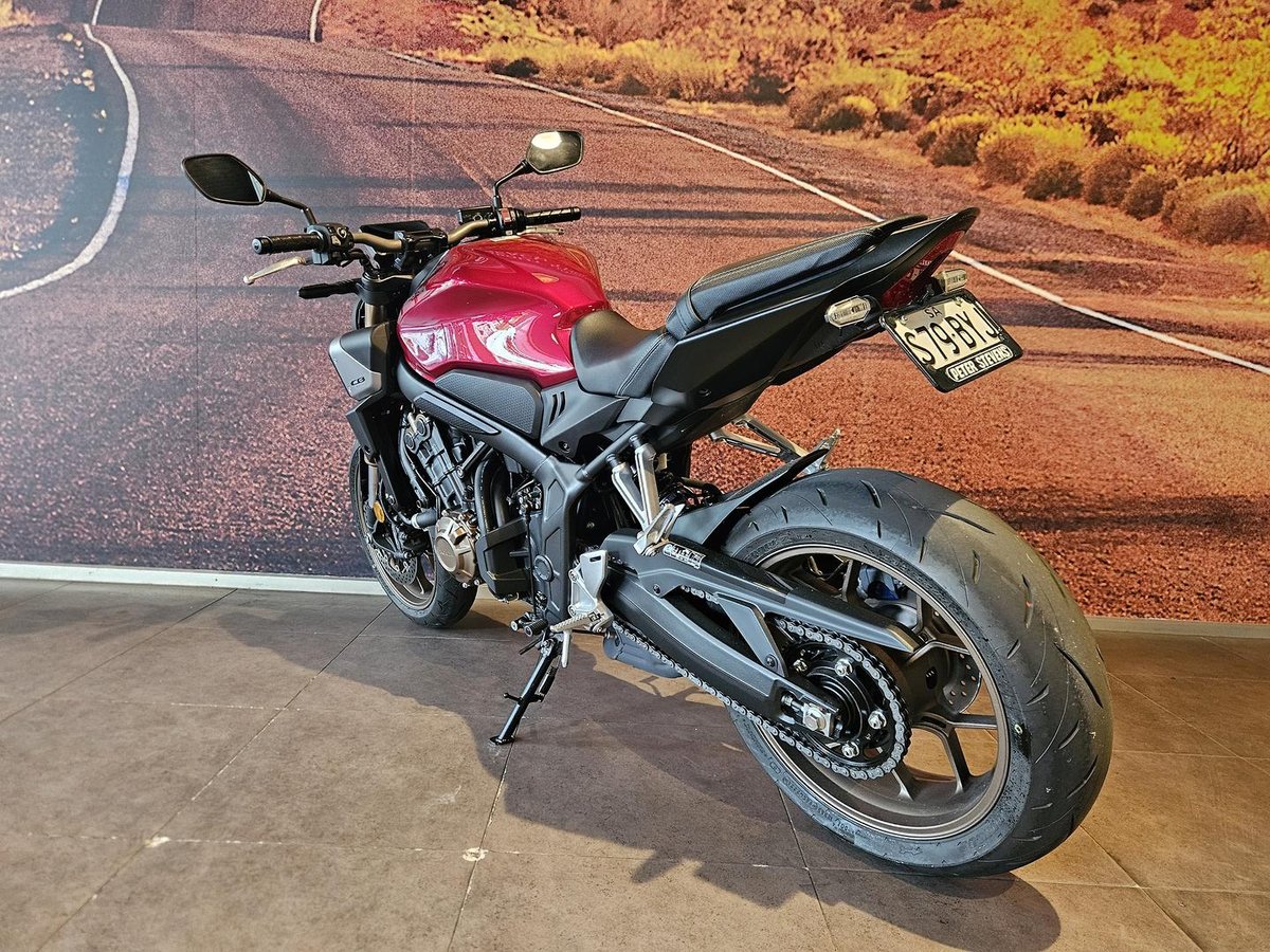 Learner Approved MotorCycle. The CB650R is the bike that ticks all boxes. The inline-four engine’s balance of effortless power delivery, smoothness, and instant acceleration. Filled with premium technology and the choice of riding the first motorcycle with Honda e-Clutch system, all packaged in unique Neo Sports Café styling.