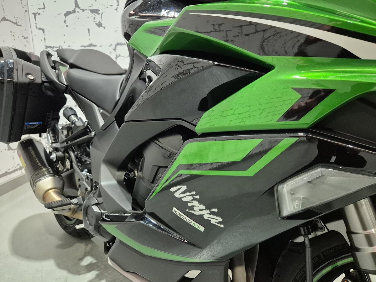 A true sport-touring weapon, the Ninja 1000SX delivers the perfect balance of performance, comfort, and practicality. Powered by a strong inline-four engine, it offers smooth power delivery for spirited rides while remaining comfortable for long-distance touring. This example comes equipped with genuine Kawasaki panniers and a matching tank bag, giving you plenty of storage for weekend getaways or extended trips. An Akrapovic exhaust adds a refined sound and enhances the bike’s already impressive presence on the road.