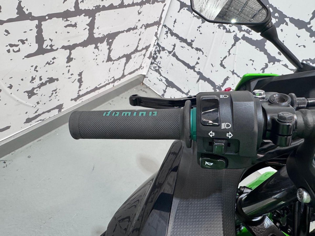 Sharp bodywork inspired by the ZX lineup, with bold graphics and signature Kawasaki attitude.