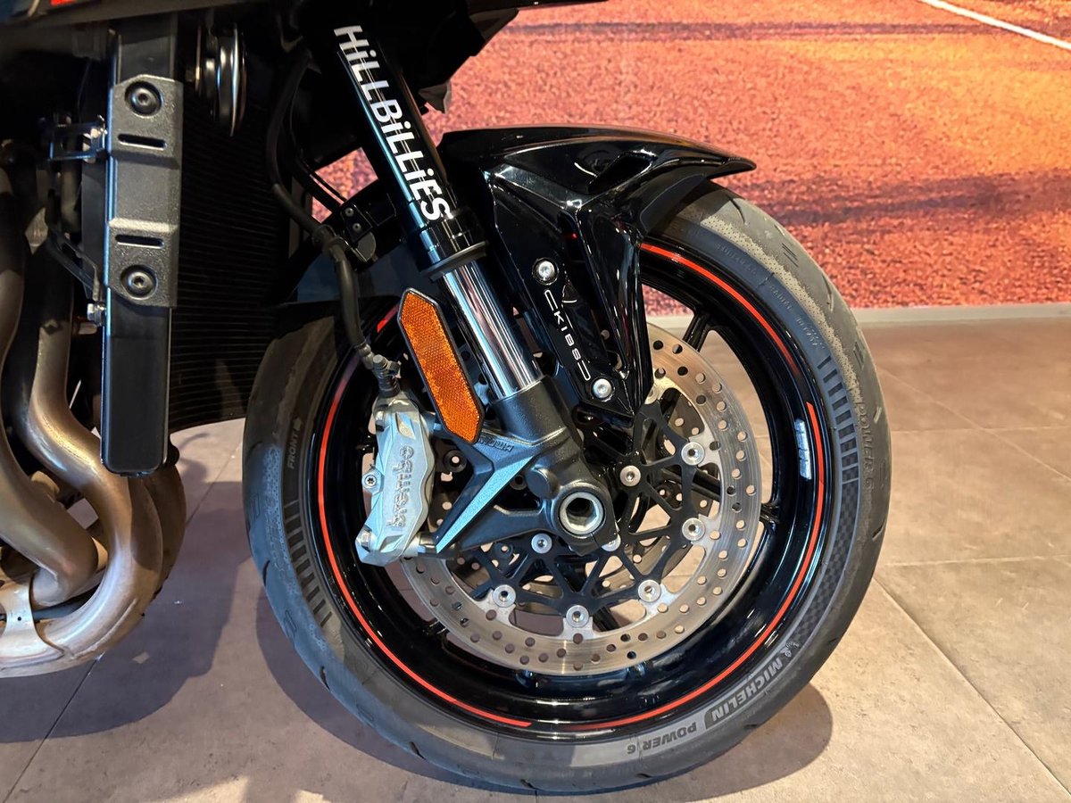 • Instruments / Dash Description: TFT full colour instrumentation; Display functions include a digital speedometer, gear position indicator, shift indicator, odometer, dual trip meters, fuel gauge, remaining range, current/average fuel consumption, outside temperature, coolant temperature, clock, Economical Riding Indicator, IMU indicator, KIBS indicator, boost pressure and boost temperature.