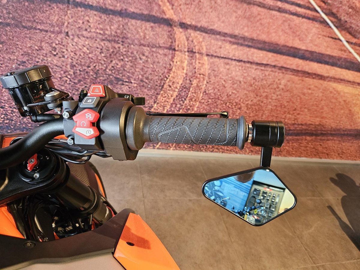 • Front Brake Description: Twin disc; Radial mounted Brembo Stylema Monobloc calipers; Hydraulic; Bosch 9.1MP Cornering/Supermoto mode disengagable ABS