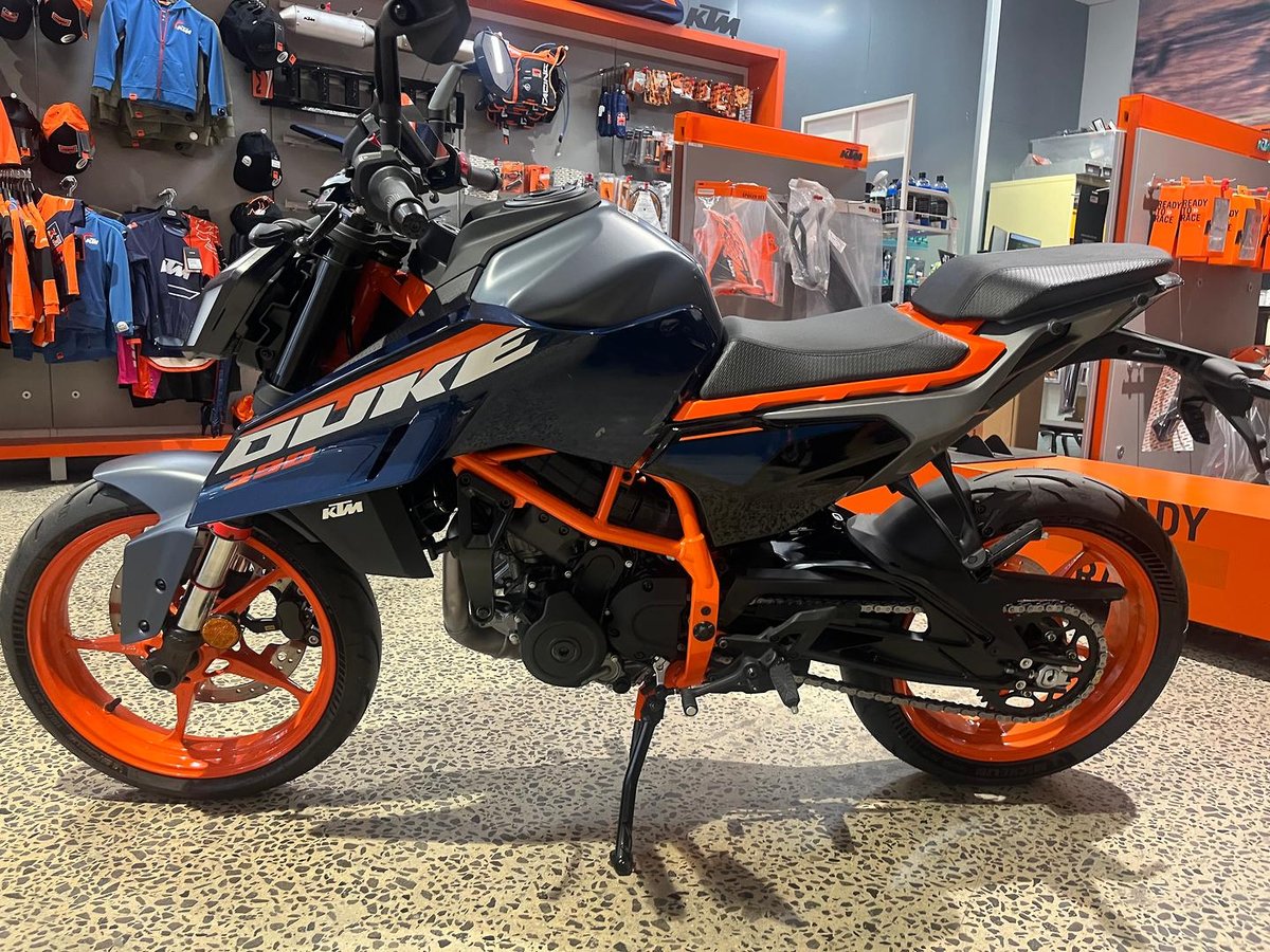 Unleash pure excitement with the 2024 KTM 390 Duke — the ultimate lightweight streetfighter. Powered by a punchy new 399cc engine, it delivers sharper acceleration, smoother power, and thrilling performance in every gear. The redesigned chassis, adjustable suspension, and TFT dash with smartphone connectivity make it as smart as it is aggressive. Weighing just 168kg, the 390 Duke handles with razor precision and confidence through every corner. Finished in striking KTM orange, this bike stands out wherever it goes. Whether carving up city streets or weekend twisties, the 2024 KTM 390 Duke is pure Ready to Race adrenaline.