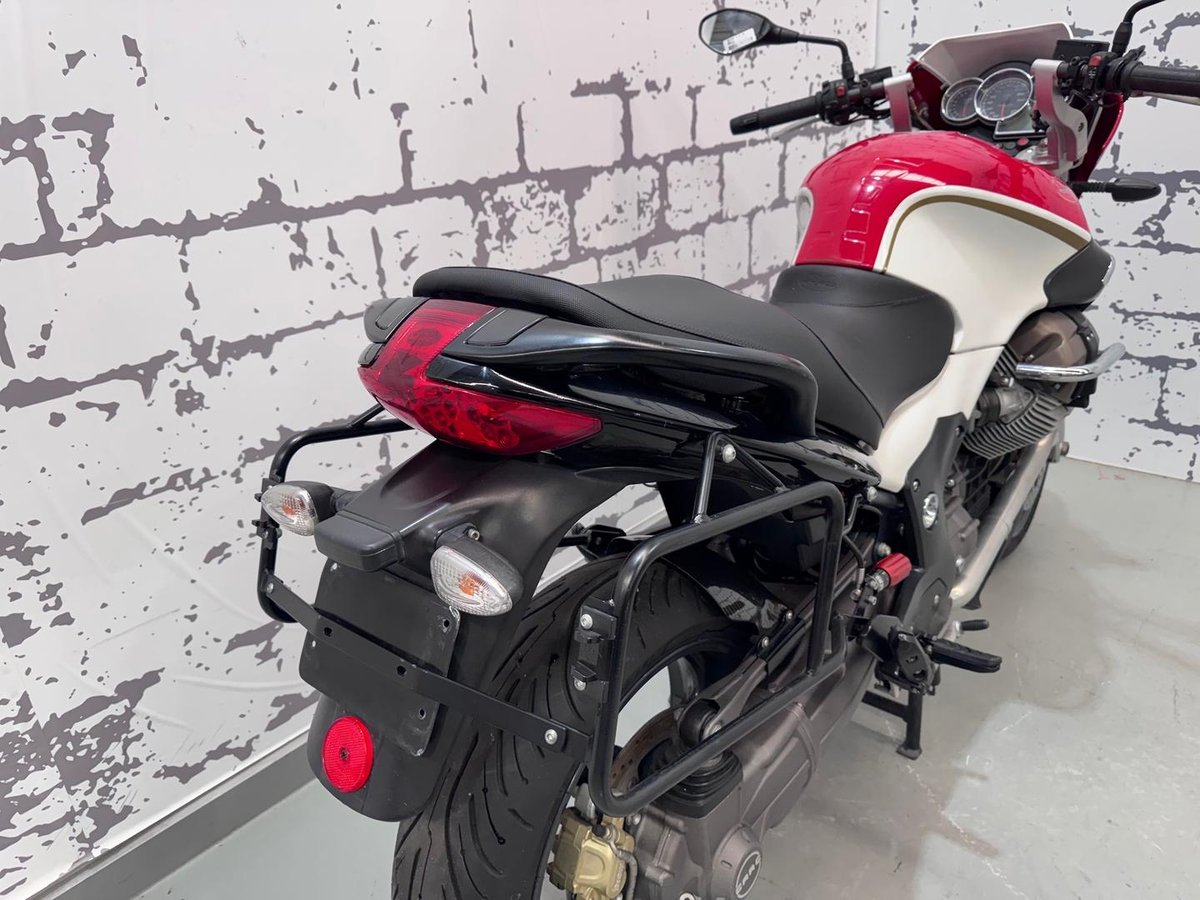 Powered by Moto Guzzi’s legendary 1,064cc transverse V-twin, the Breva delivers strong, torque-rich performance with that unmistakable Guzzi rumble. Smooth shaft drive means low maintenance and clean operation, while fuel injection ensures reliable starts and crisp throttle response.