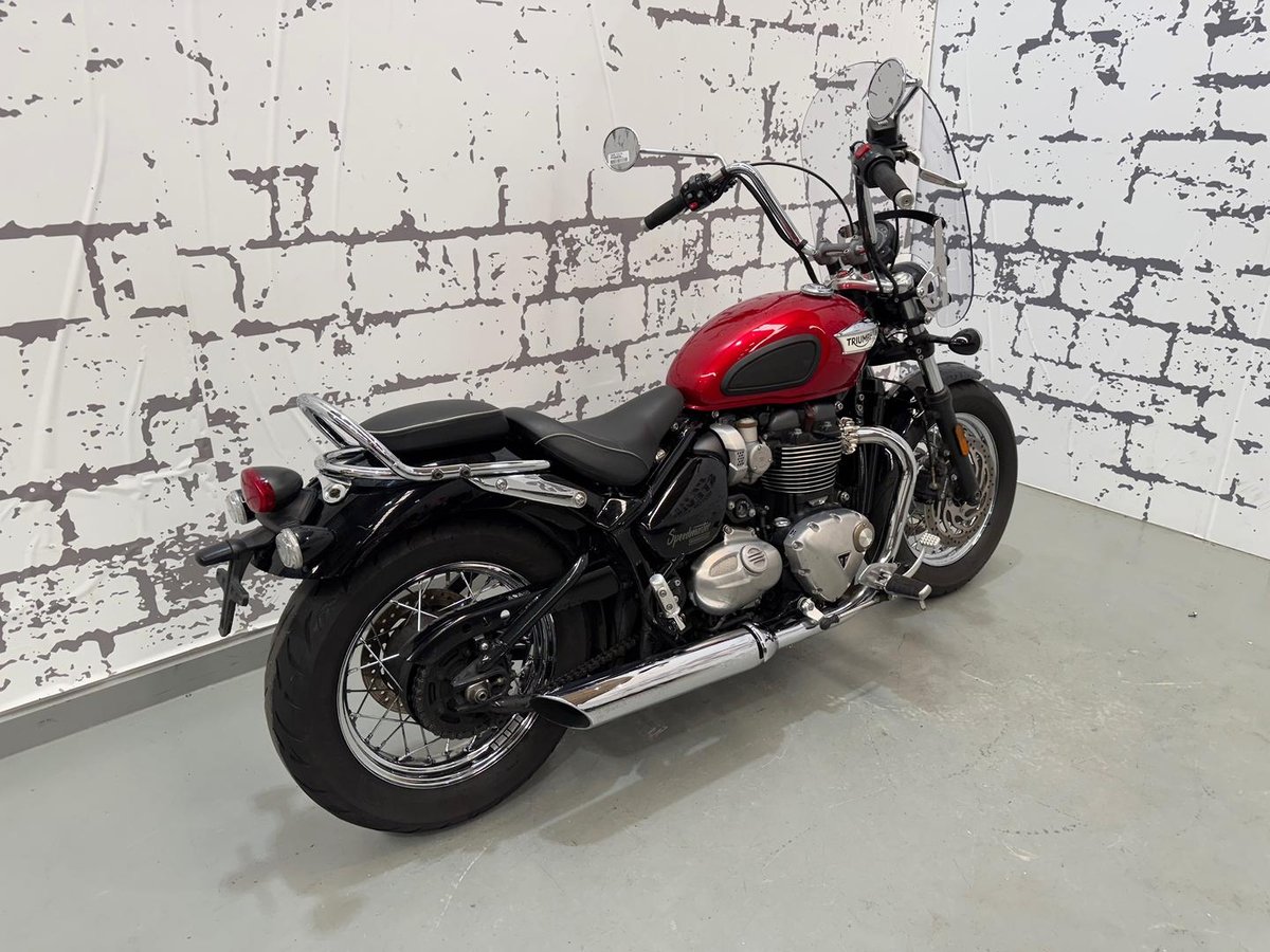 Turn heads and enjoy effortless cruising with this 2019 Triumph Speedmaster, a perfect blend of classic British styling and modern engineering. Powered by Triumph’s 1200cc parallel-twin, it delivers smooth, torque-rich performance with a deep, unmistakable exhaust note.