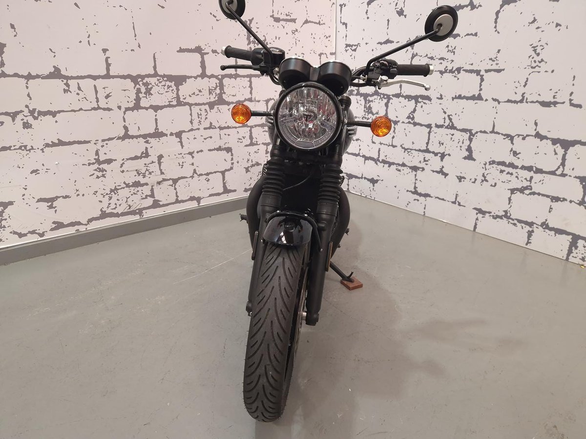 Powered by a torquey 1200cc parallel twin, the T120 delivers smooth, effortless performance with classic British character.