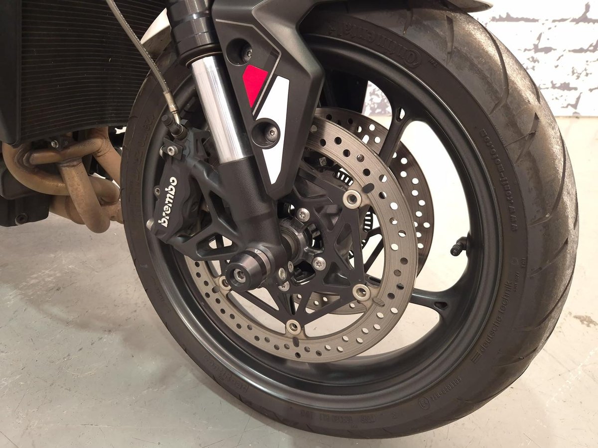 Powered by Triumph’s exhilarating 765cc triple-cylinder engine, this bike delivers razor-sharp throttle response, a strong mid-range punch and a spine-tingling exhaust note. The R model features premium Showa suspension, powerful Brembo brakes and advanced rider modes, offering an exceptional balance of performance and everyday usability.