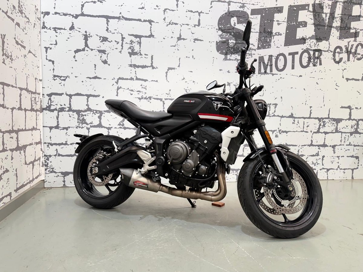 This Triumph Trident 660 is a fantastic middleweight naked bike, offering smooth triple-cylinder performance, sharp styling, and easy everyday rideability. Renowned for its balance of power, comfort, and premium finish, the Trident is an ideal choice for both newer riders and experienced riders alike.