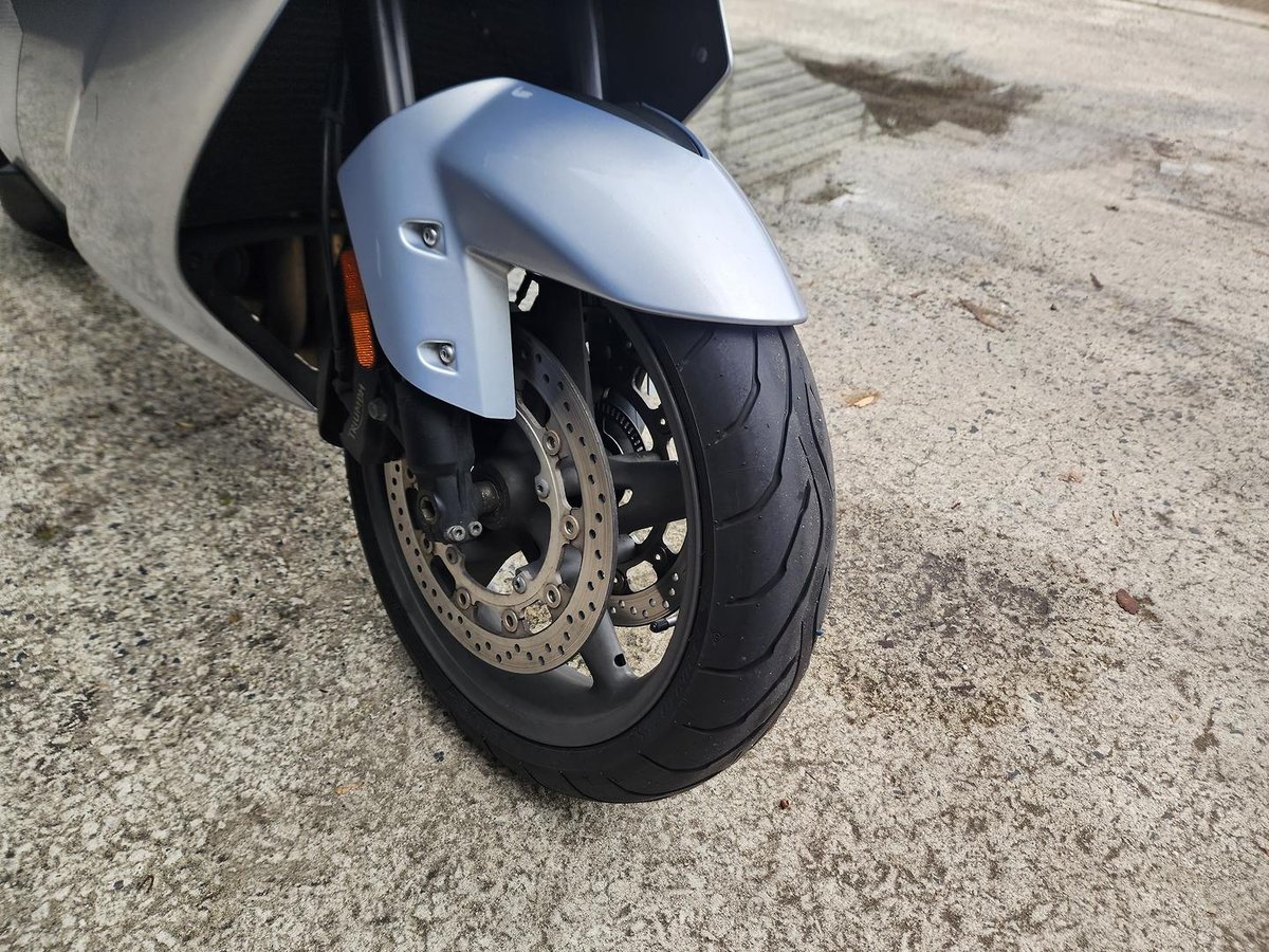 • Front Brake Description: Twin floating discs; Nissin calipers; Hydraulic; Linked; (Front partially activated by rear)ABS