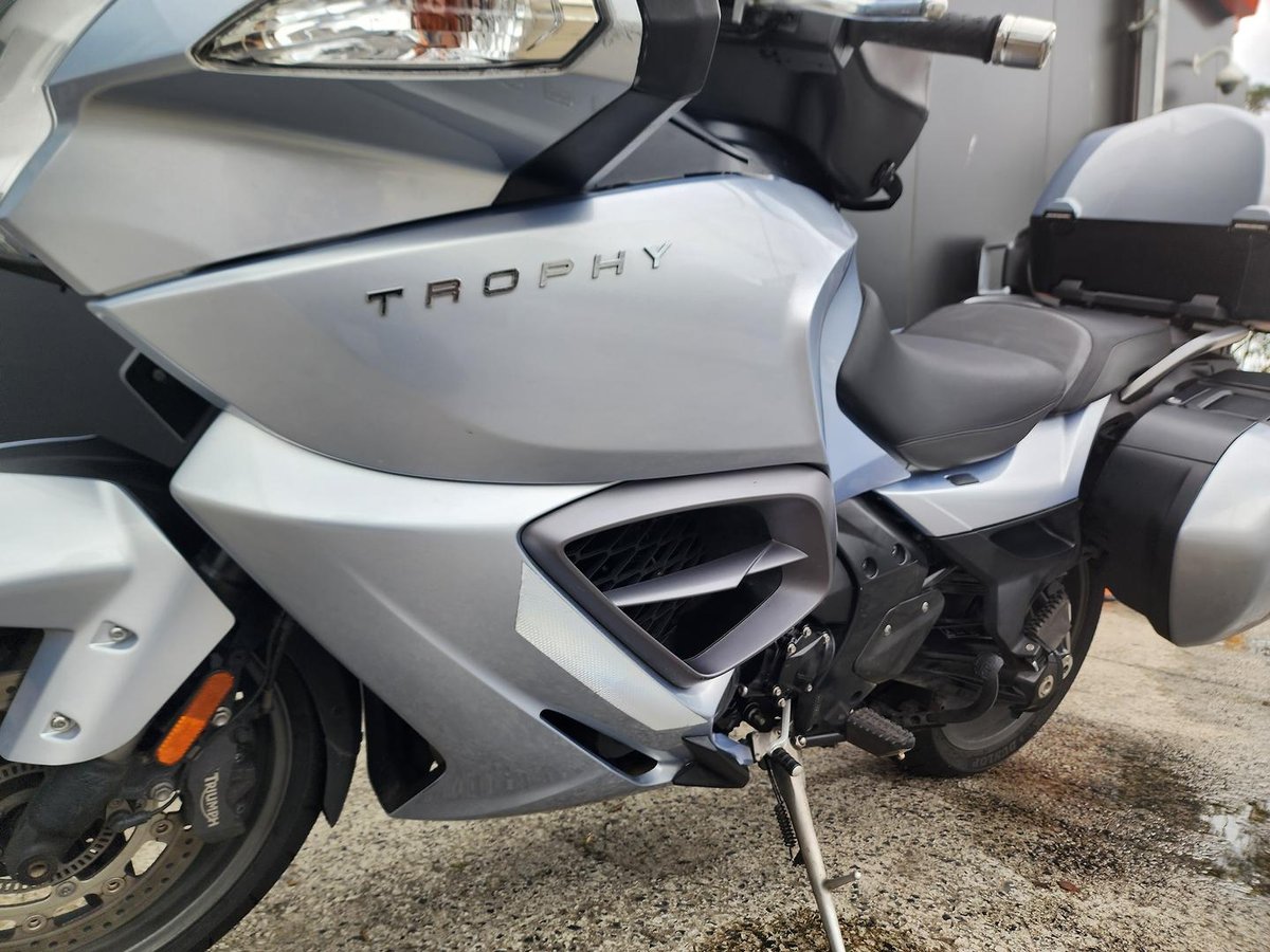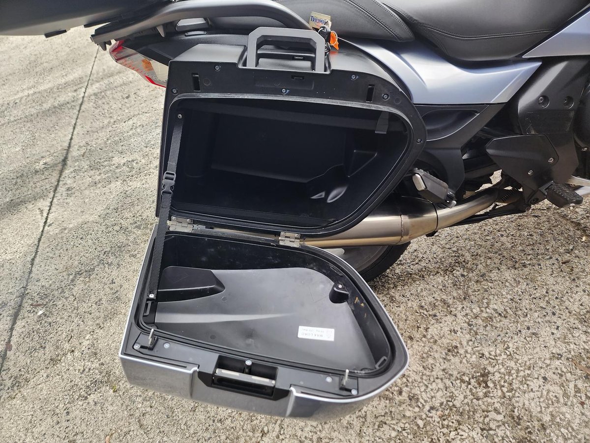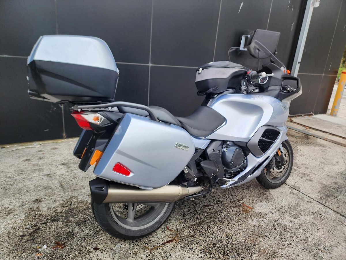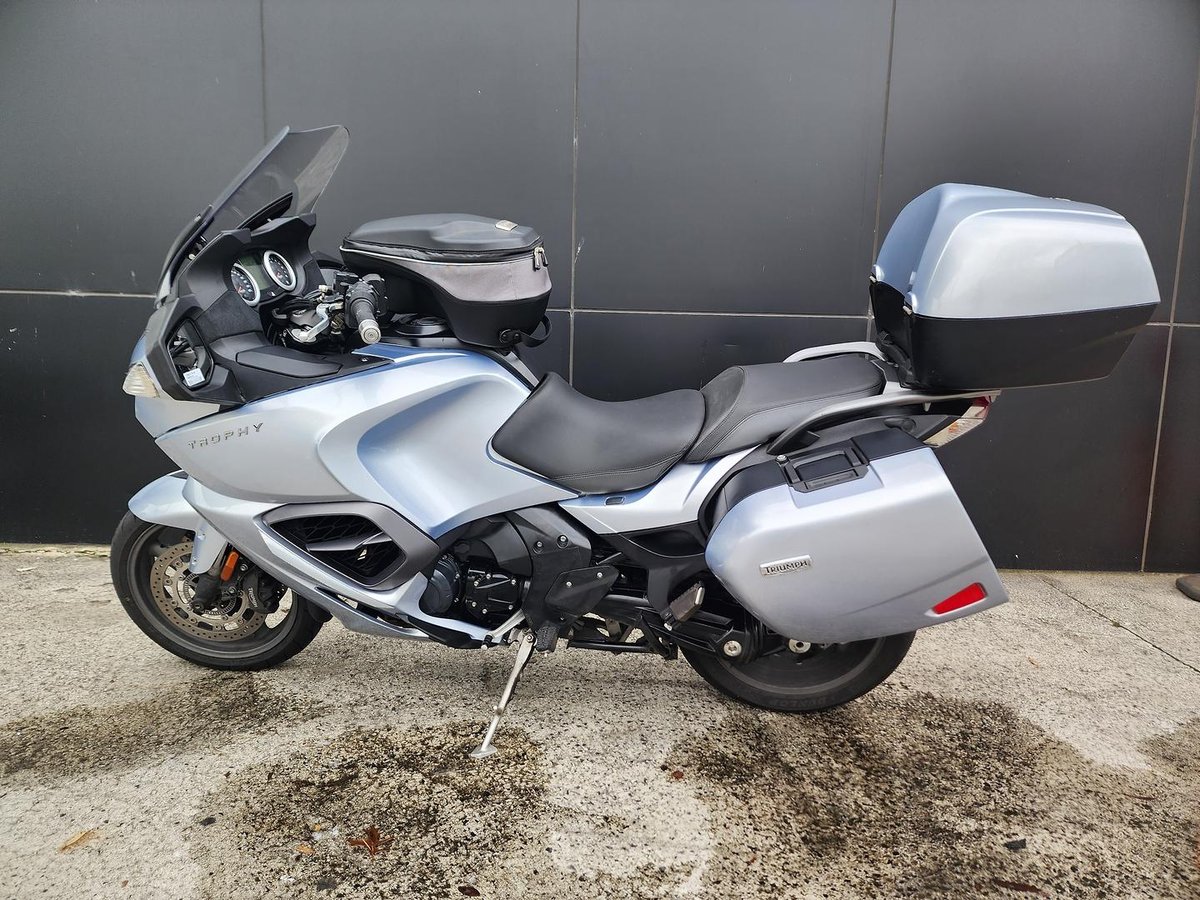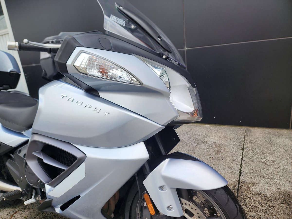 Experience the perfect blend of power, comfort, and touring luxury with this 2013 Triumph Trophy. Its smooth triple-cylinder engine delivers effortless performance, while advanced electronics, including cruise control and traction control, ensure a refined ride. Designed for long journeys, it offers exceptional ergonomics, generous storage, and superb wind protection. Meticulously maintained and ready for adventure, this Trophy is your ticket to unforgettable miles on every road ahead.