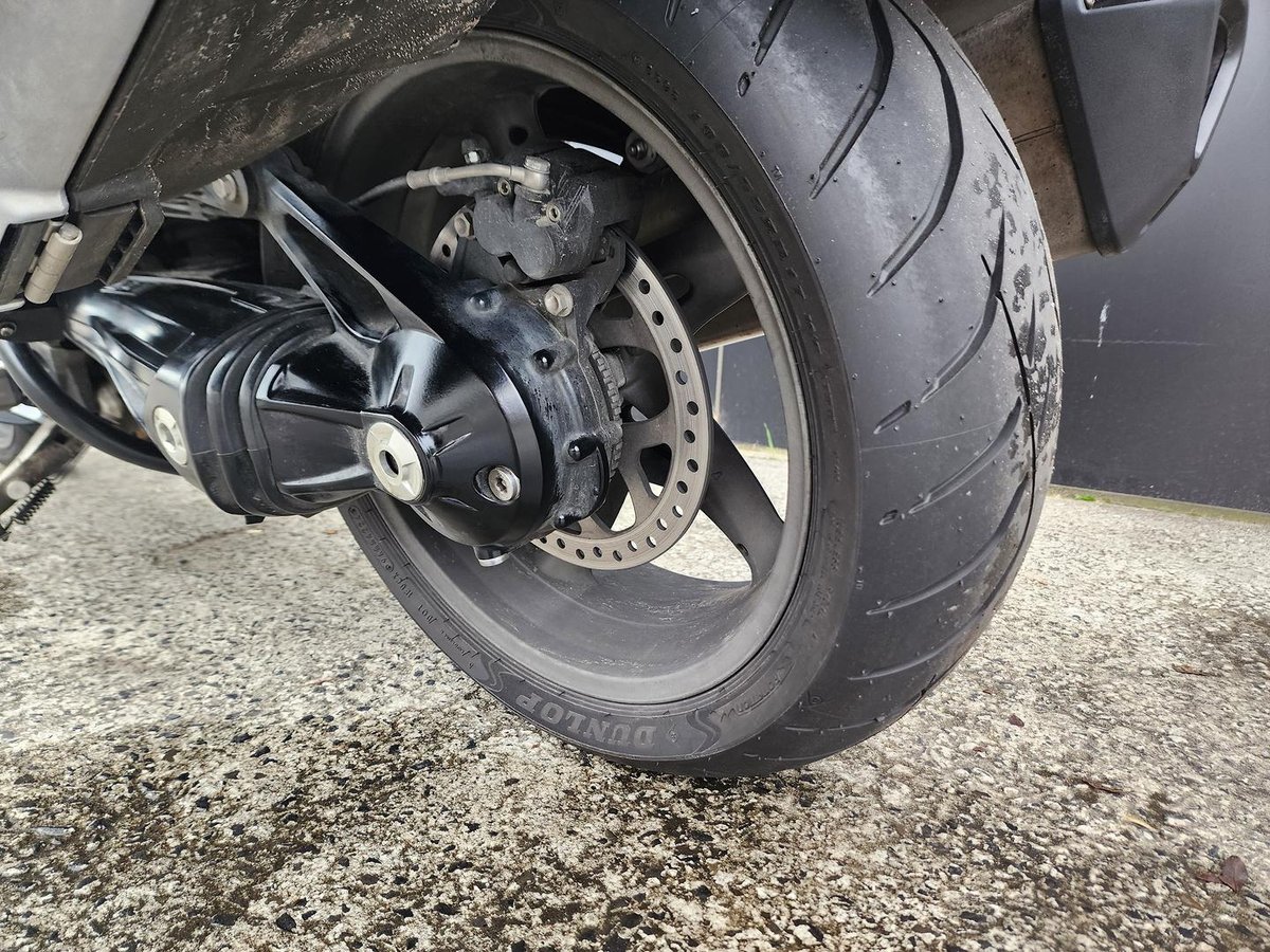 • Rear Brake Description: Single disc; Nissin sliding caliper; Hydraulic; Linked (Front partially activated by rear); ABS
